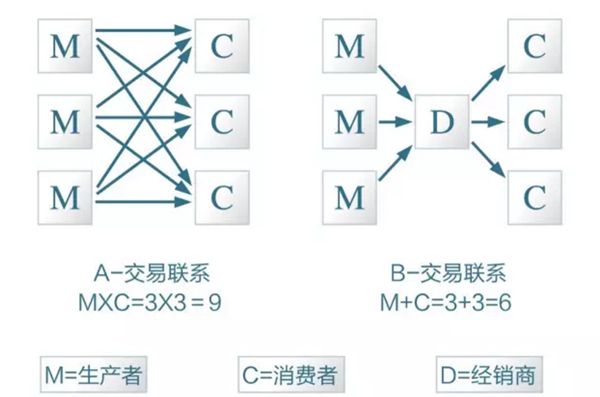 在復(fù)雜的市場(chǎng)環(huán)境中,由于中間商的存在,交易環(huán)節(jié)是減少的,而不是增多的。交易成本是降低的,而不是增加的,也就是說你剝掉合理的中間環(huán)節(jié),消費(fèi)者拿到手里的商品價(jià)格只會(huì)更高而不會(huì)降低。